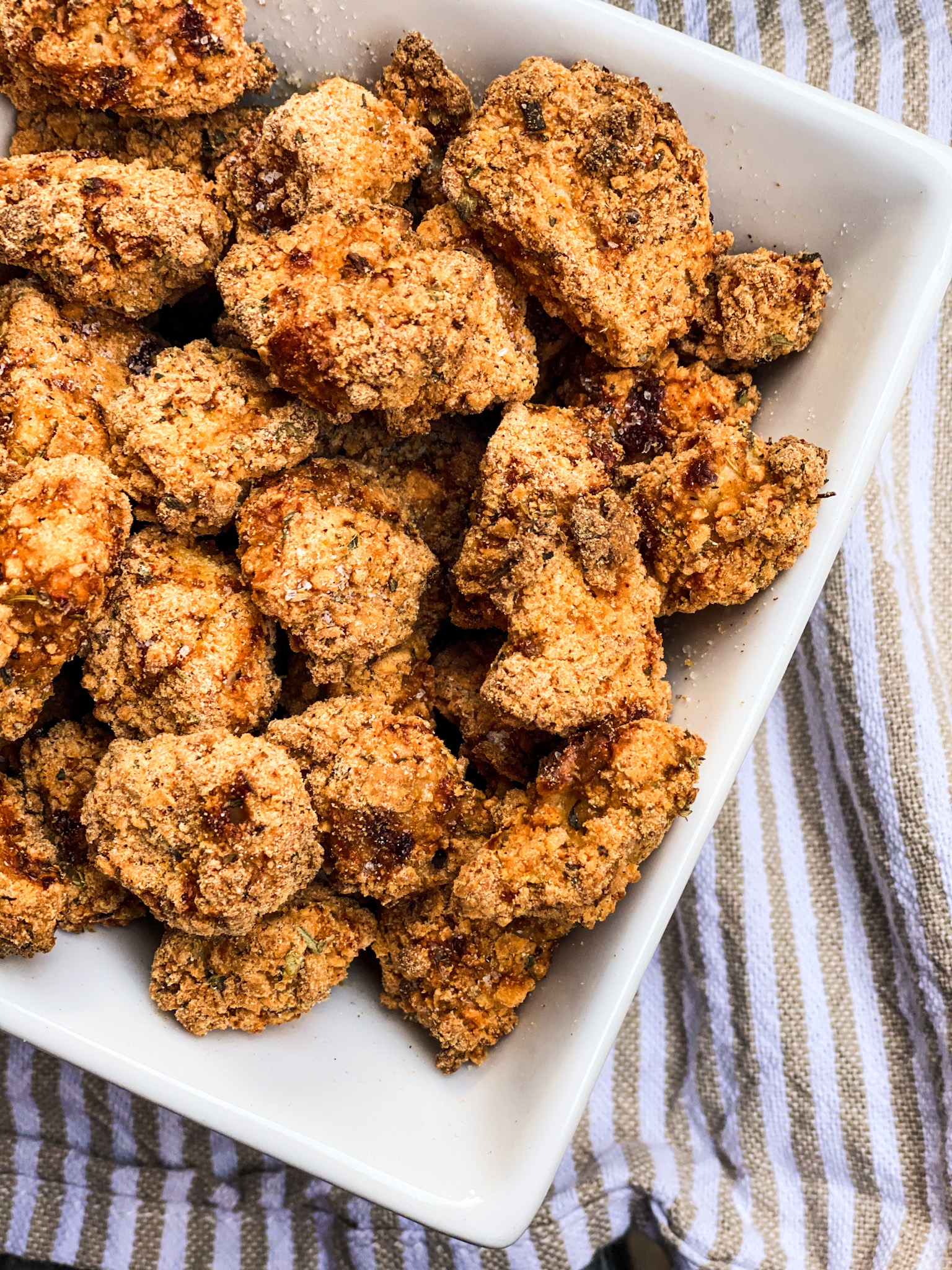 Now that live sports are in full swing and there is always a game on TV to watch, I thought I’d share the simple chicken tender recipe so we can all enjoy these guilty pleasures at home… with less guilt!