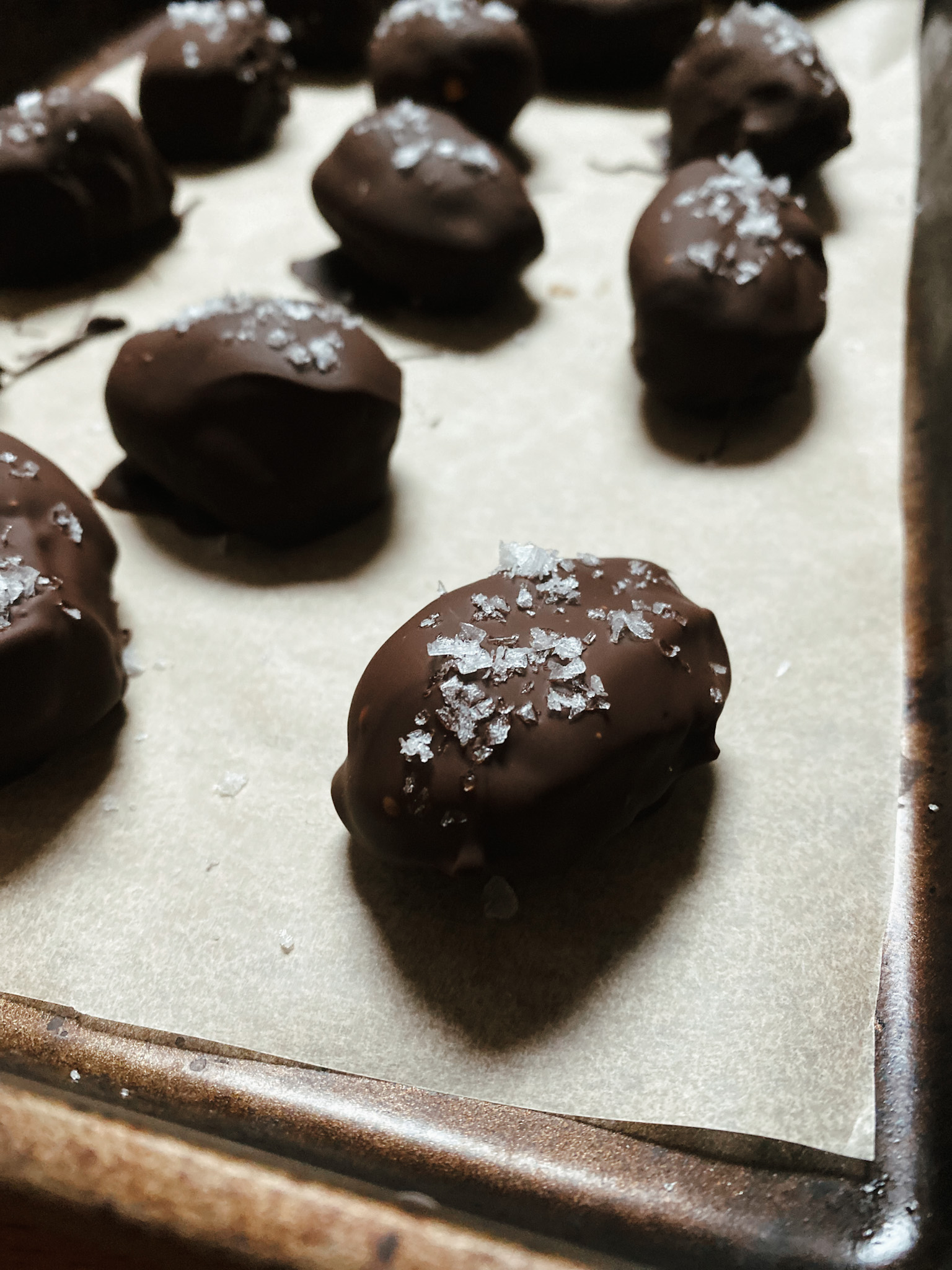 I was optimistically skeptical about making these as I am with most “viral” recipes but they have since become a staple in our house. With just a few ingredients and to my delight – some SALT – these are easy to make, store in the freezer, and pop out when you are craving a bit of sugar but don’t want to whip out an entire batch of cookies or break open a new chocolate bar. I like to think of them as “set it and forget it” where I’ll spend half an hour making a huge batch then slowly dole them out (or Nick inhales them).