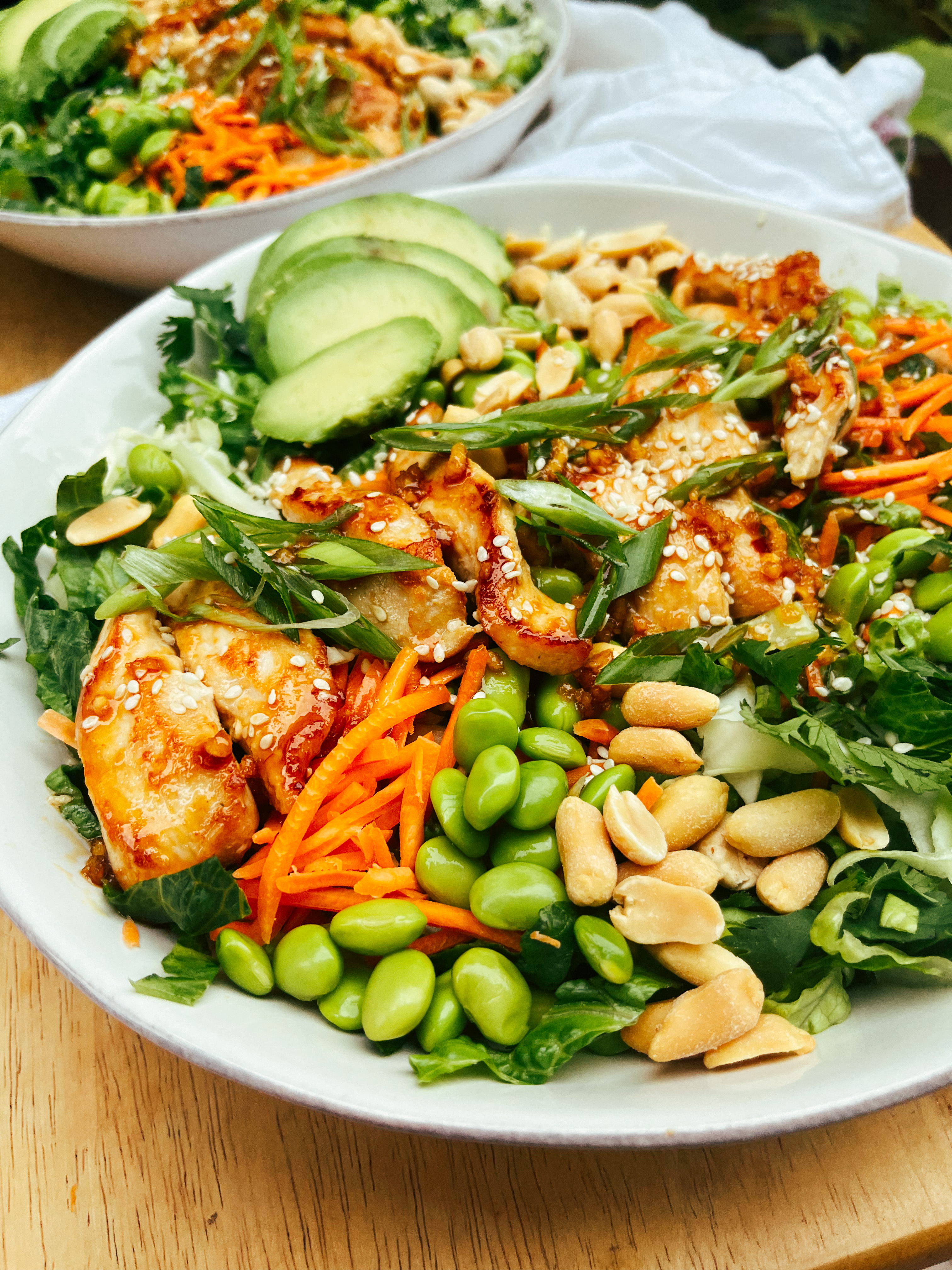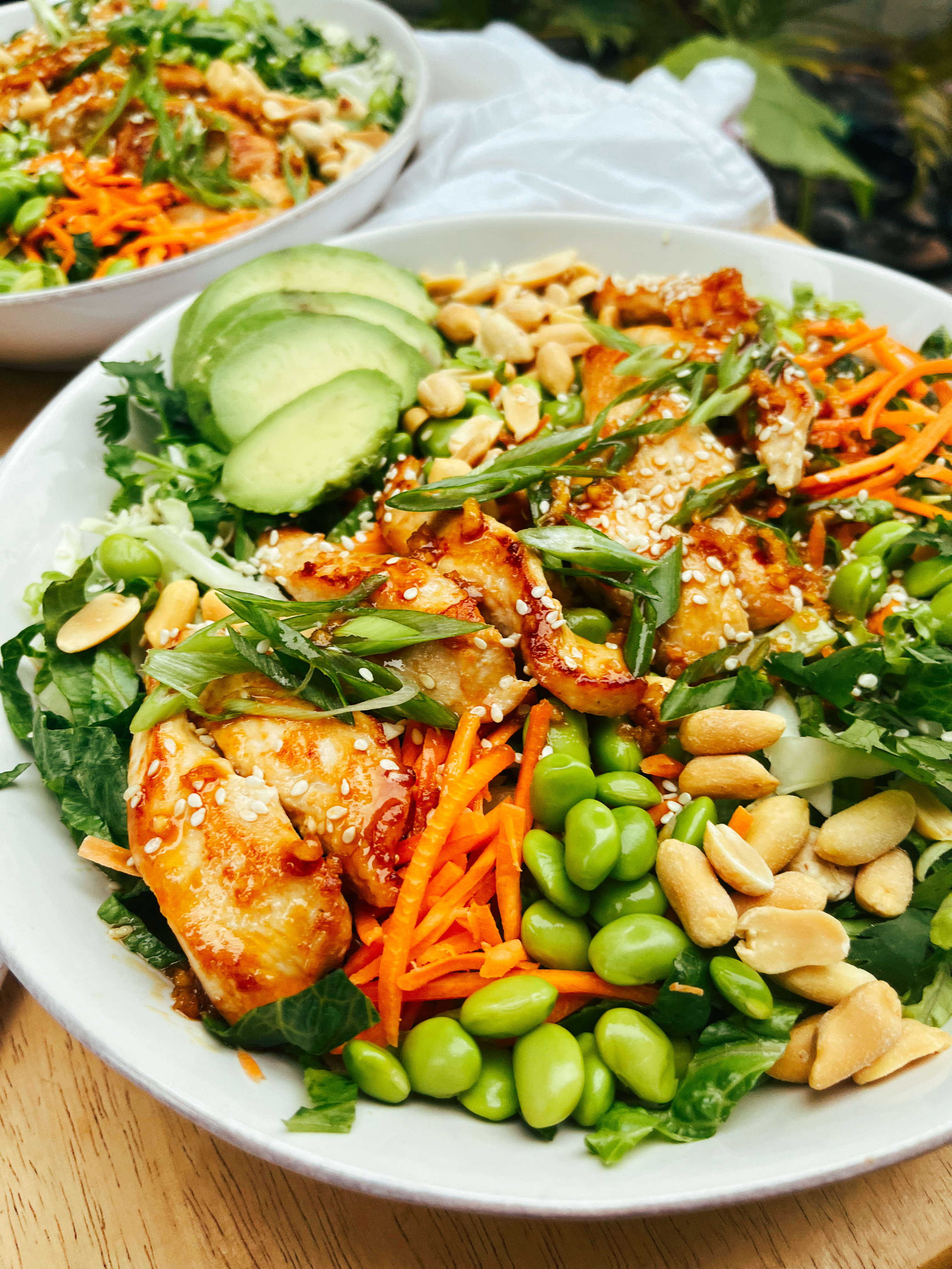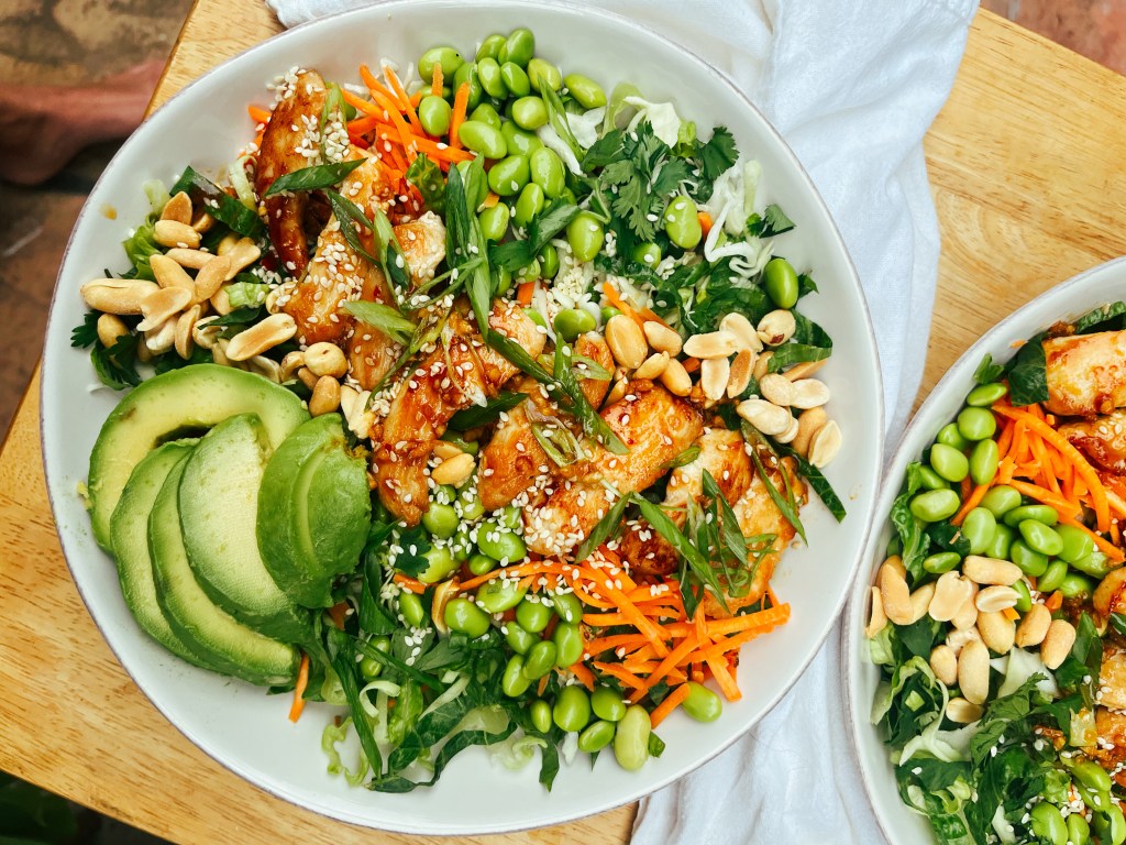 - Top with edamame, peanuts, avocado, and extra sesame seeds.