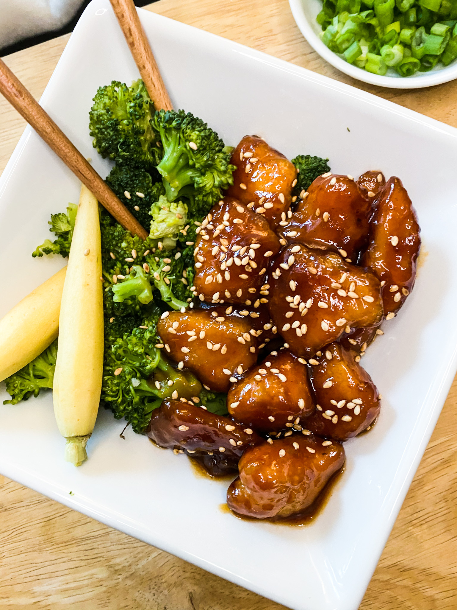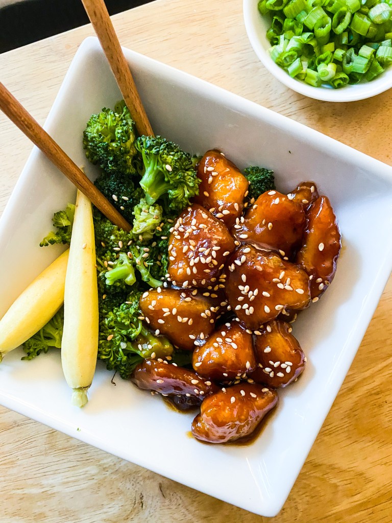 With only potato starch as the coating for the chicken, the only modification Laura (Nick’s mom) had make was substituting soy sauce for tamari. Easy peasy!