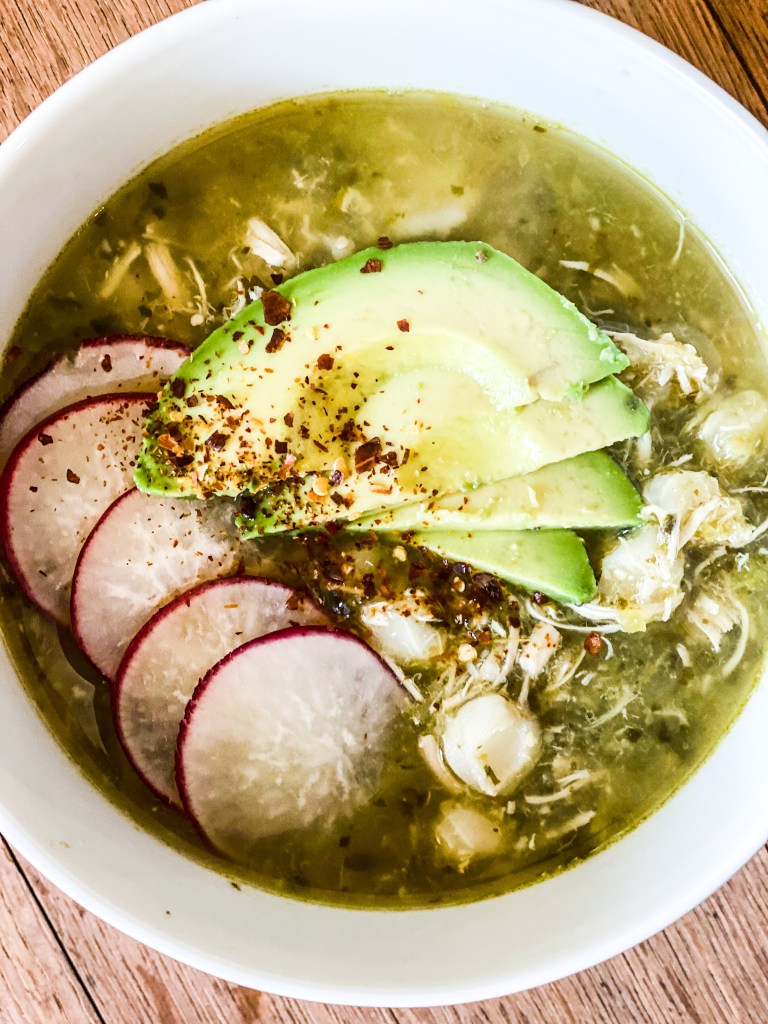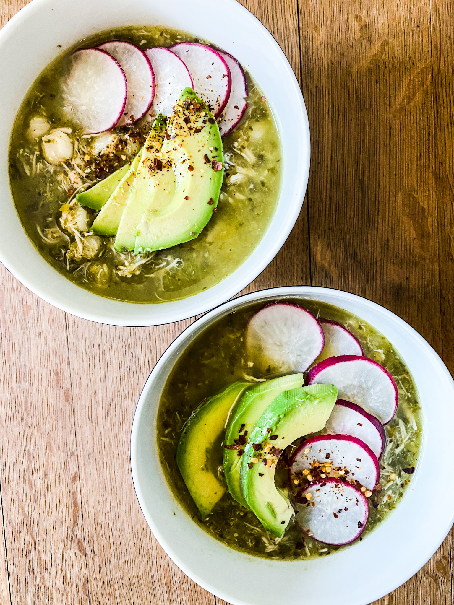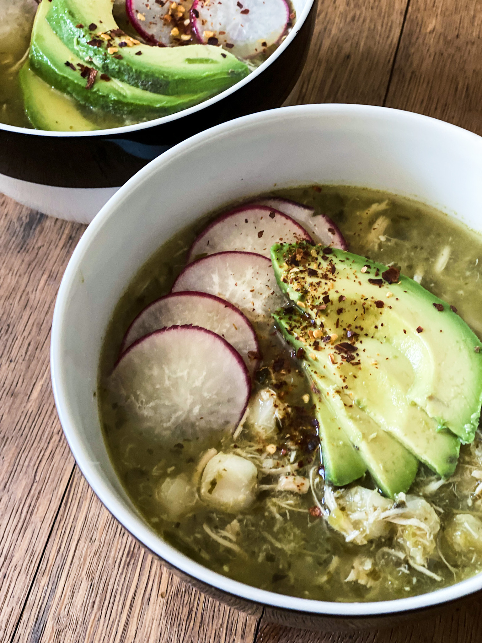 Now, this recipe is not her recipe – I still need to get that from my mom! But it is a rendition of a pozole made by superstar chef and cookbook author/blogger The Defined Dish that is loaded with vegetables and is so damn good, I have made it for multiple dinner parties. The recipe makes so much soup that it is perfect to make ahead for a crowd, then dazzle with an array of toppings. I like it so much, I’ve even made large batches to distribute to friends who are in the throws of a newborn baby and just want reheatable *homemade meals.