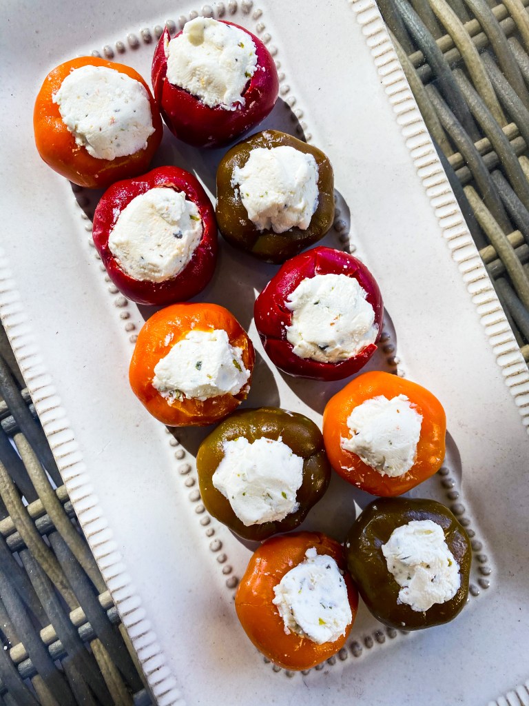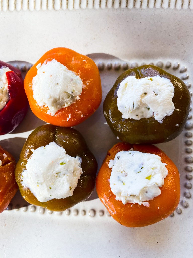 - Using a small spoon, gently stuff the center of the pepper with the cheese.