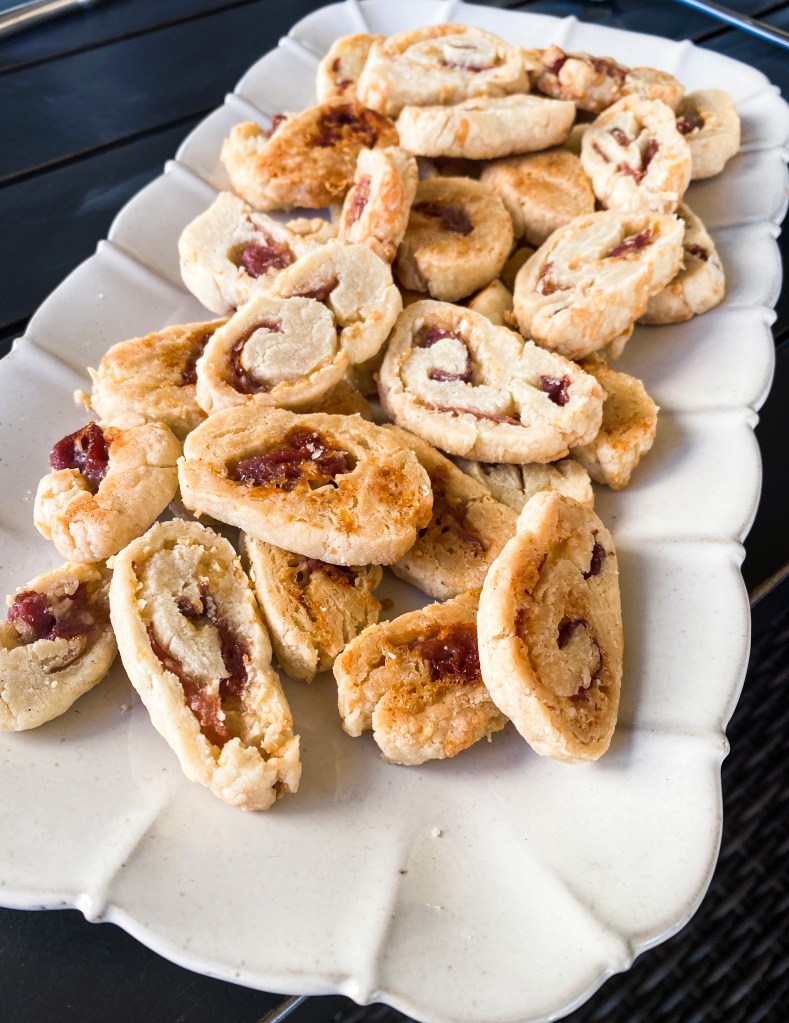 Historically, it’s a simple recipe – purchase frozen puff pastry, prosciutto, parmesan, and basil. Then you roll, cut, bake, eat.