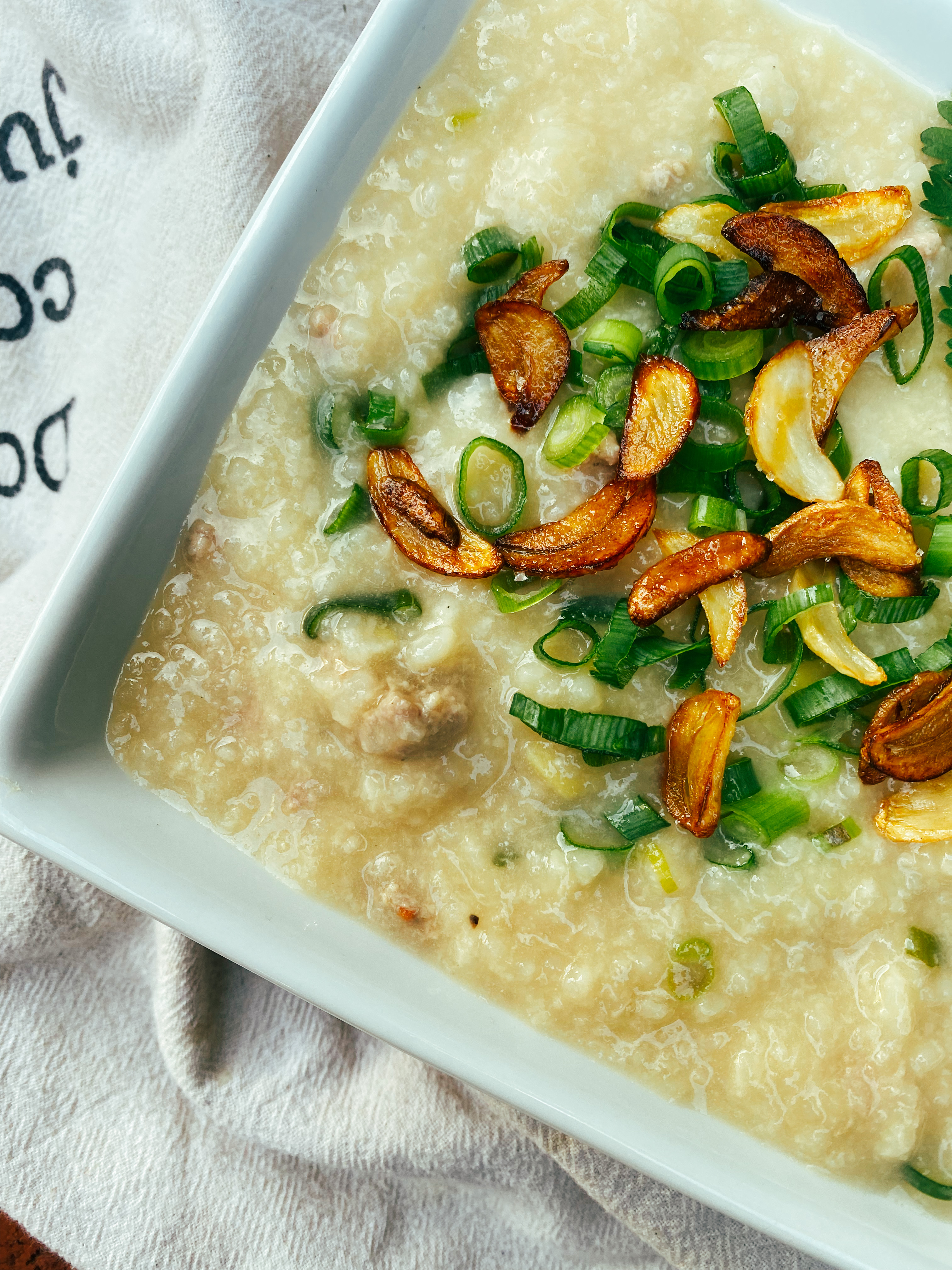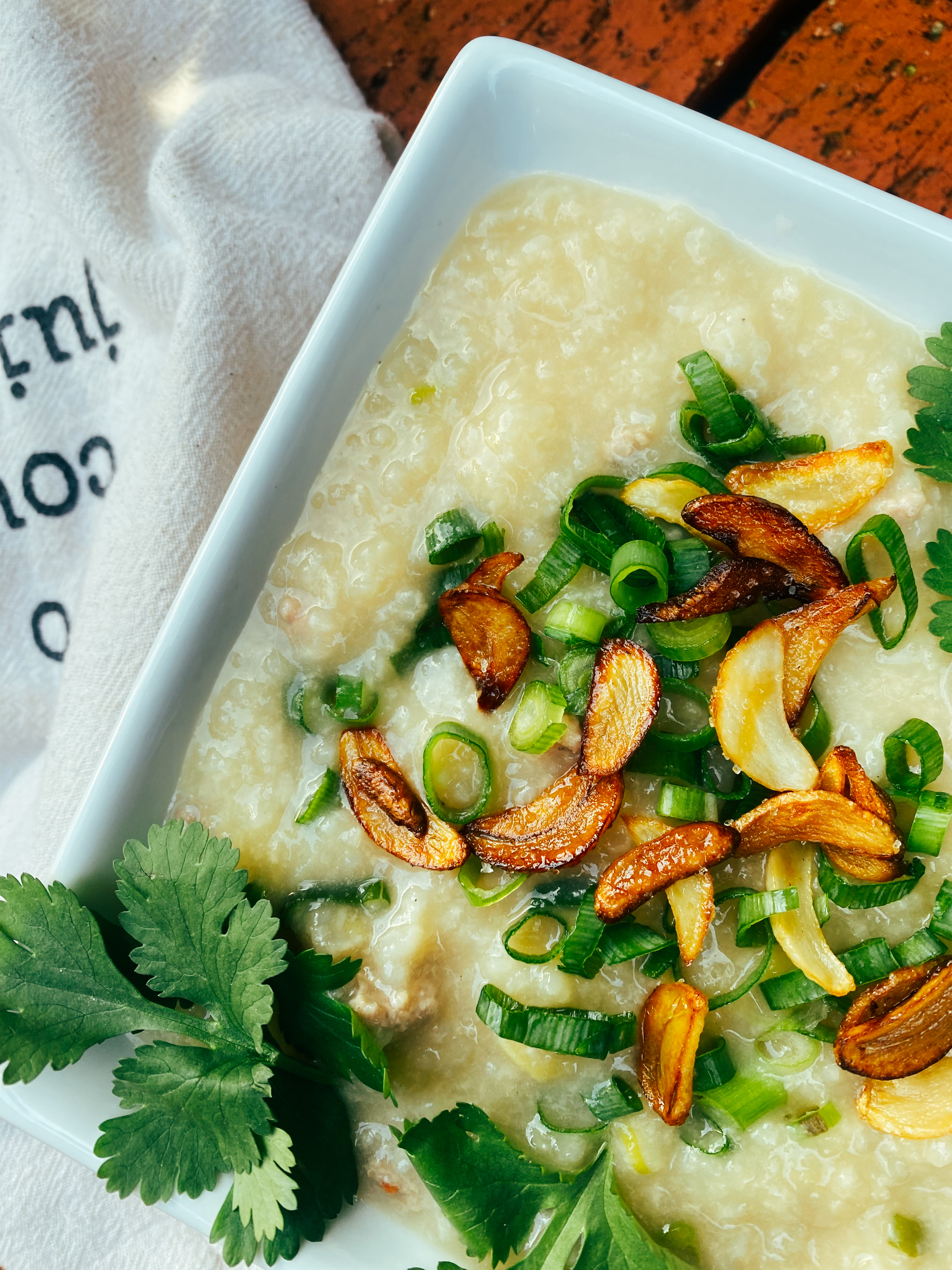 I was first introduced to this delightful comfort food by my mother-in-law. It’s a great way to use the scraps and leftovers from holiday dinners that rely on roasted large birds. Check out my original Chicken Congee recipe for my traditional version.