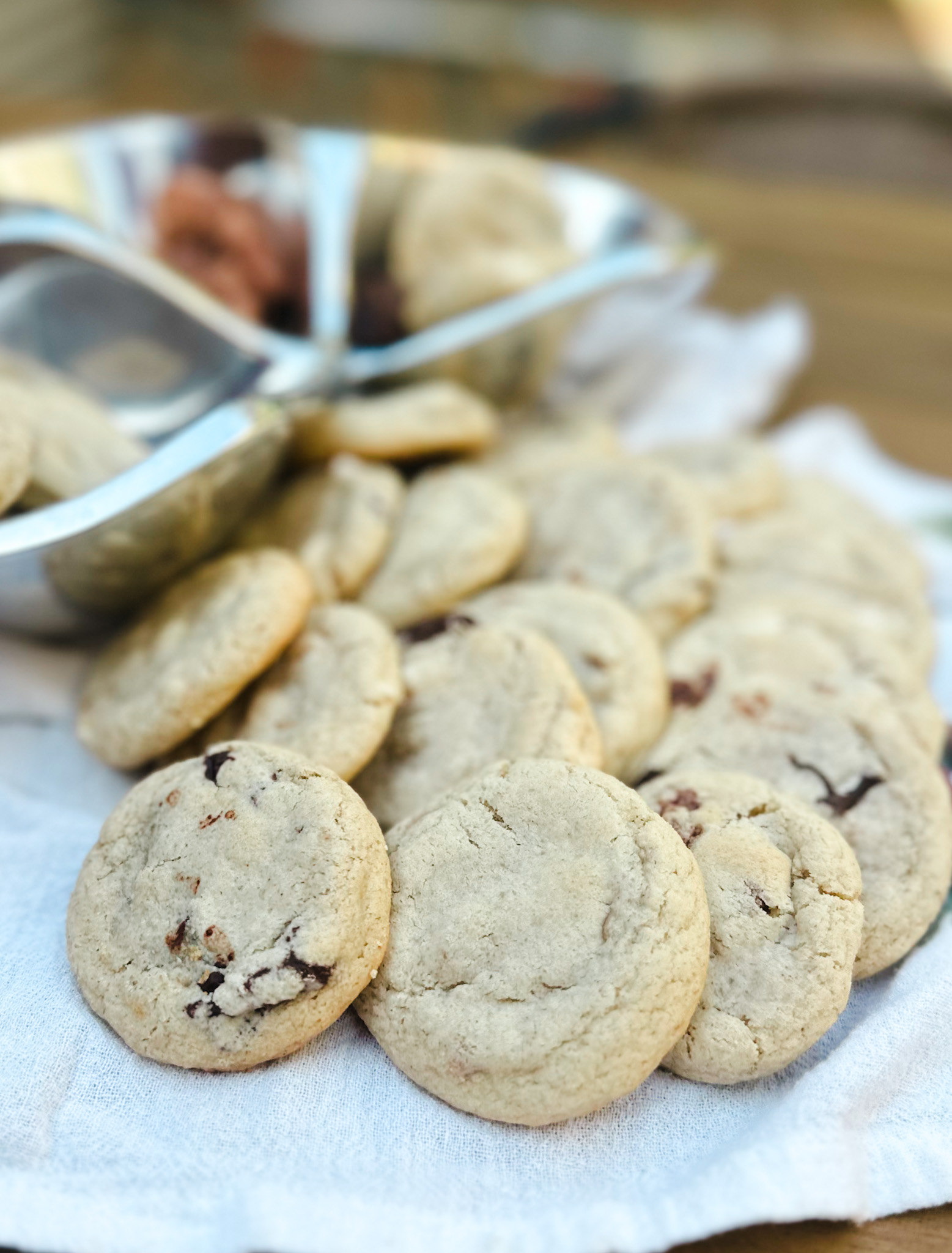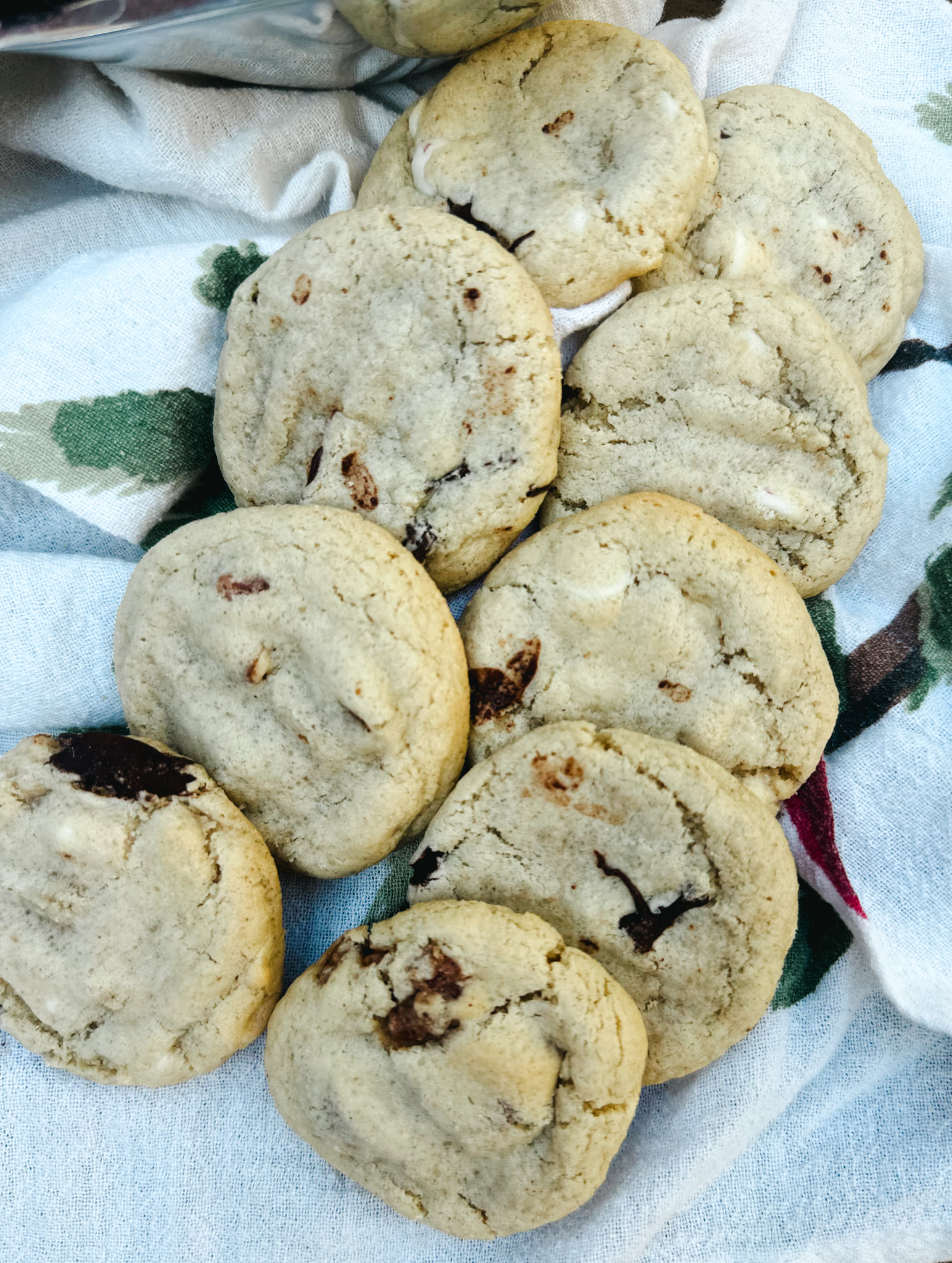 I will admit I have compulsively bought 3-4 bags of the seasonal mix-ins at Trader Joes… peppermint chips, salted caramel chips, butterscotch chips, pralines, you name it… I have bought it. And since this recipe makes so much dough to begin with, it’s beyond easy to divide up and mix in whatever combination your heart desires! Don’t like peppermint? Grab a butterscotch cookie. Don’t like butterscotch? Try a chocolate chip pecan one. Or even just buy green and red M&Ms to make them look festive. Genius!