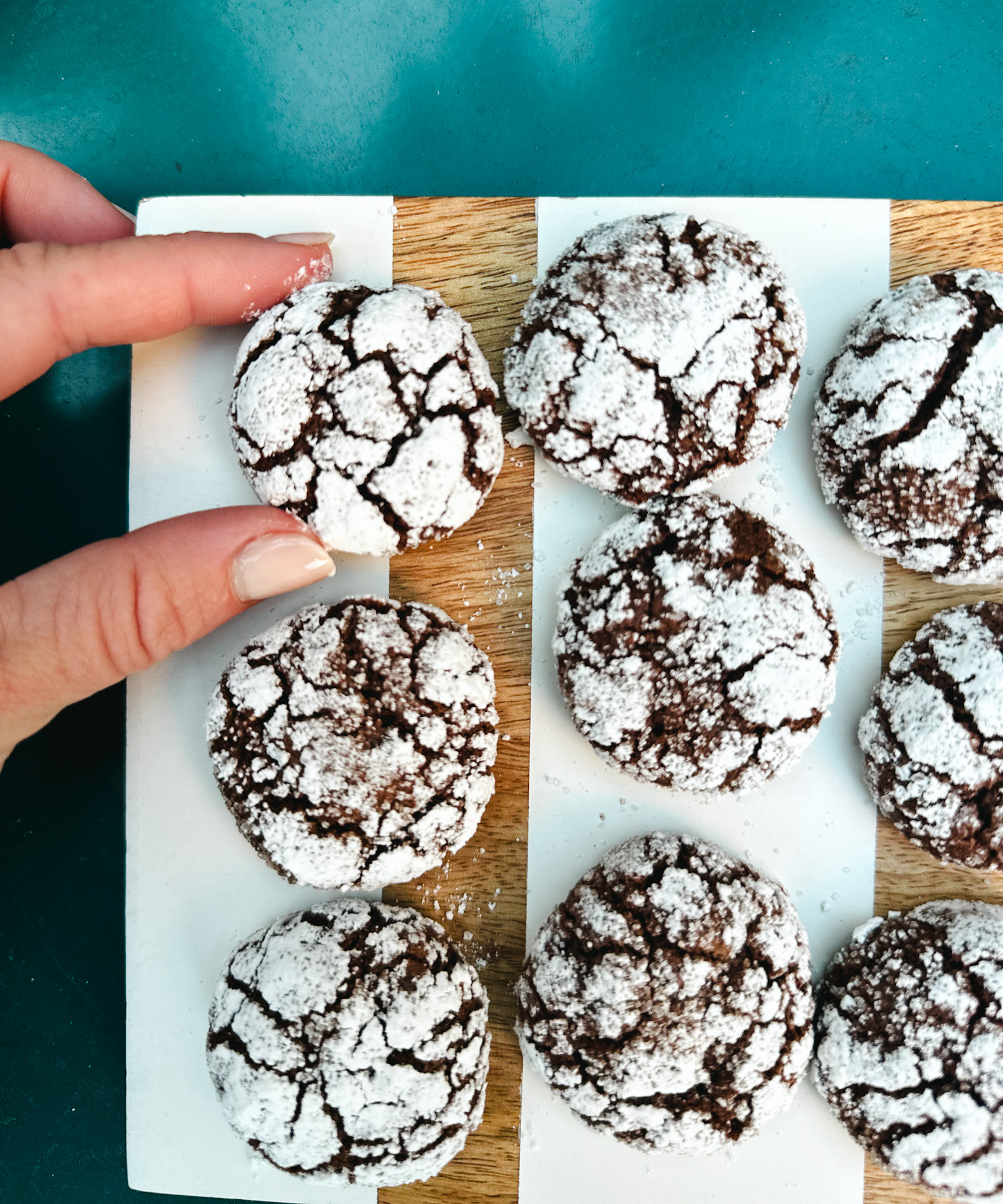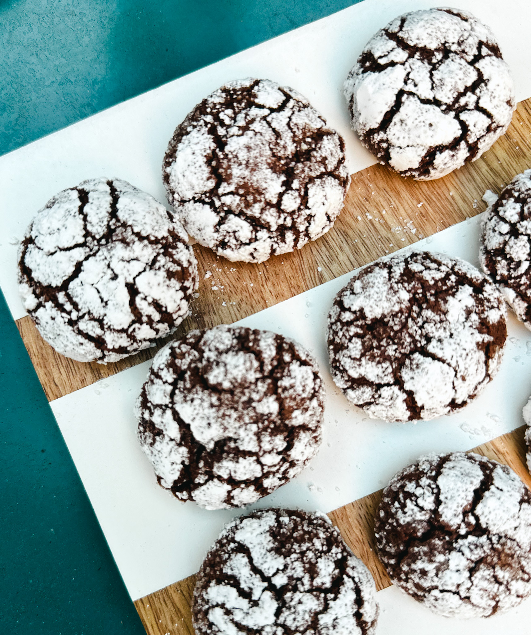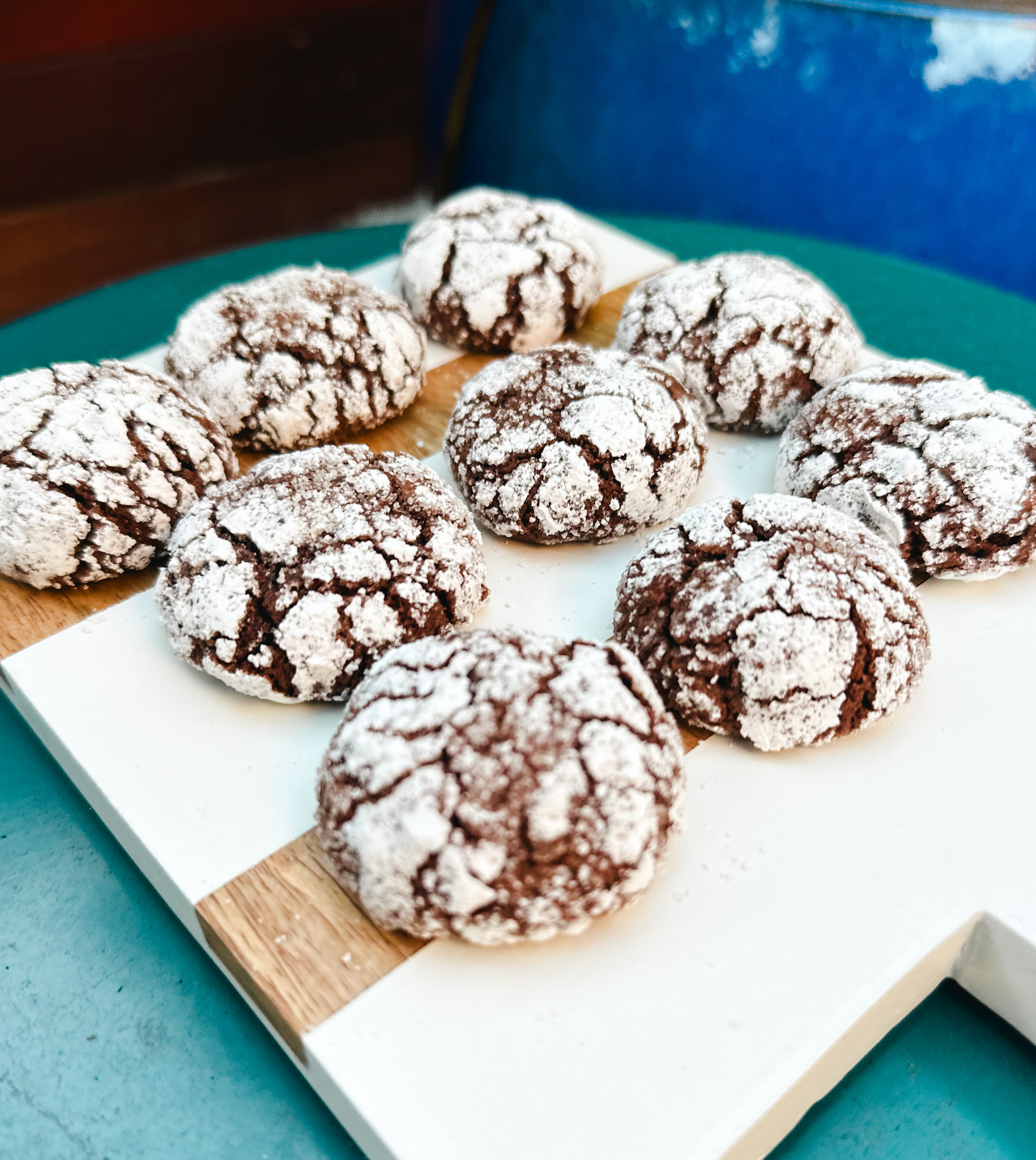 This is one of those. I am not usually a chocolate-only kind of fan but for these I make an exception! My mom found the recipe for this in some magazine years ago and cut out the recipe old school style, keeping it in her accordion recipe file for occasions like these. They are super simple to make and what I like about them is they FEEL festive given the dusting of powdered sugar. They look cute and are sweet, but not too sweet. And let me tell you about the texture… they are chewy, gooey, and stay that way for days. A little crunch on the outside and a perfectly smooth inside. My dad claims they definitely don’t taste gluten free… which I take as the ultimate compliment from him!