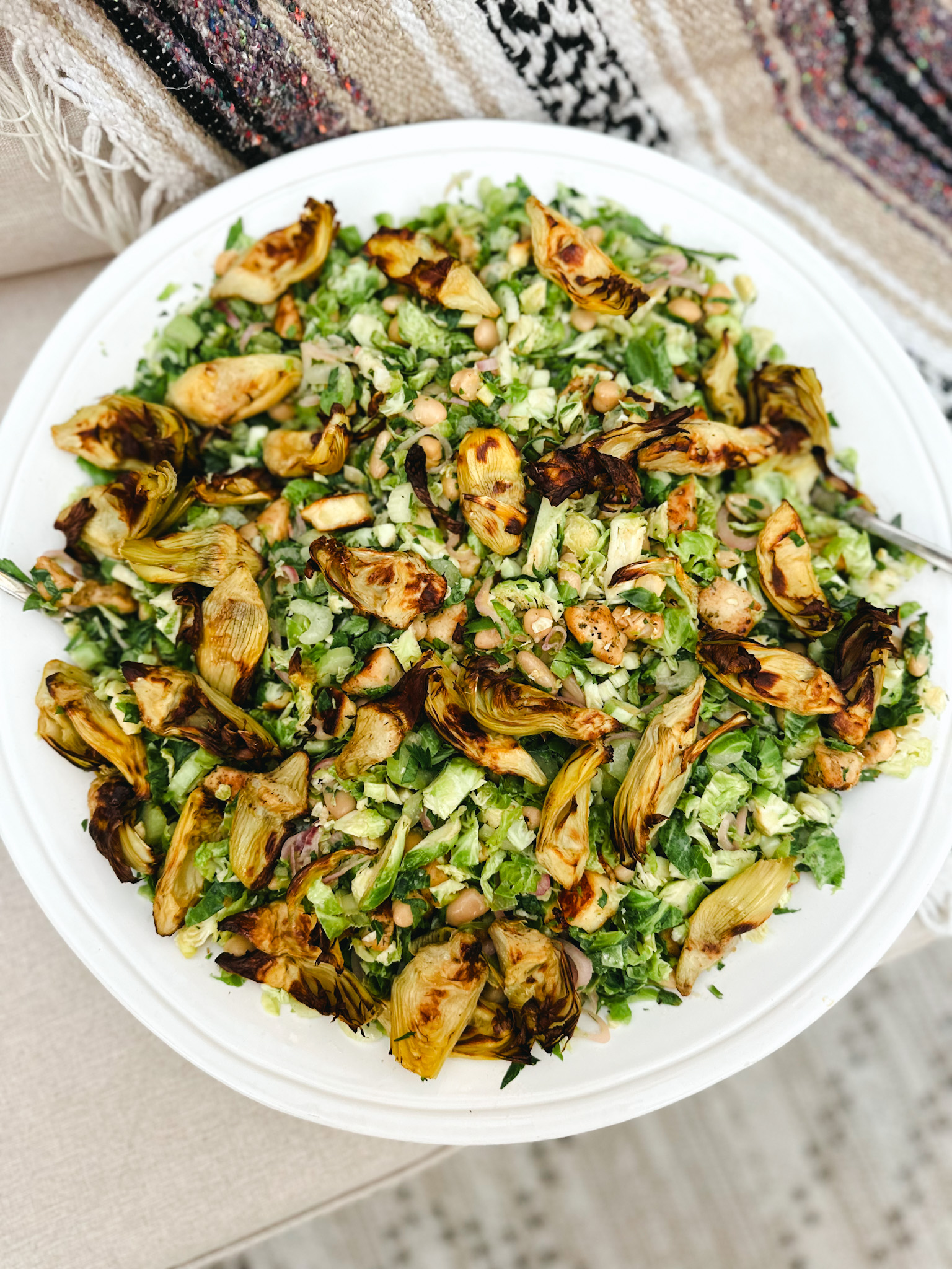 - Gently stir together all salad ingredients, including artichokes. Enjoy!