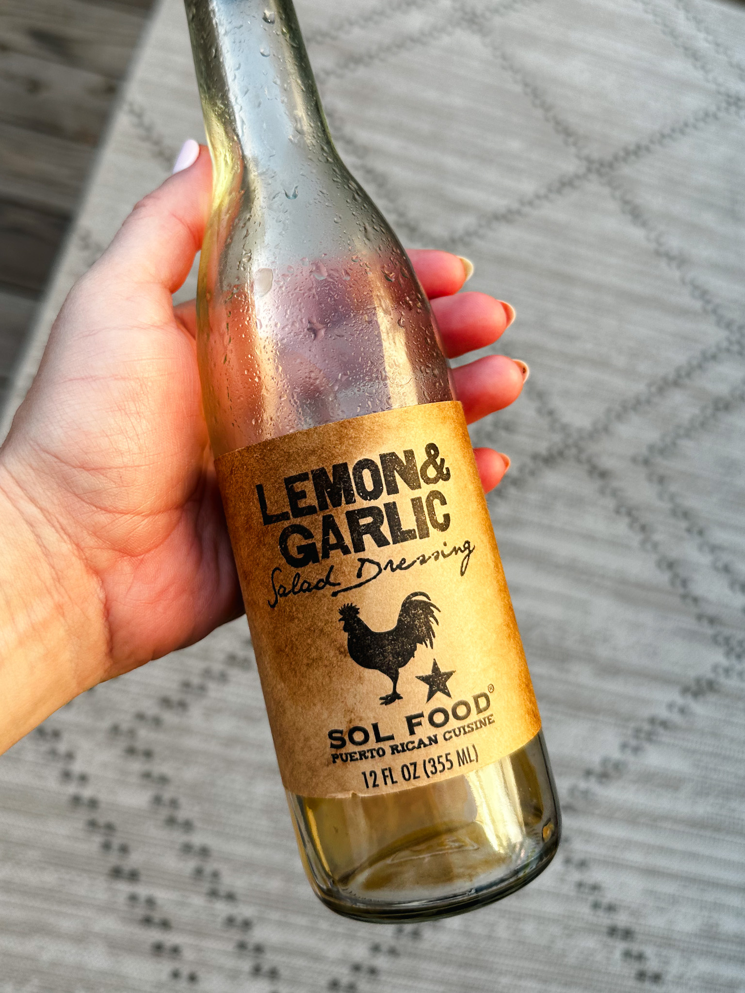 The curveball with this one is it includes Sol Food Lemon Dressing – a local Bay Area restaurant salad dressing. If you live in the Bay, you are most likely well aware of Sol Food, a beloved Caribbean restaurant that started as a hole in the wall window and was so good there are now multiple locations in the area. You can buy the salad dressing in store, delivery service, and now they even ship anywhere in the states! So technically you can buy it even if you are on the East Coast. But as per the pictures below, the ingredients on the dressing are SUPER simple. So I also included how to make your own at home. With only 4 ingredients, you are not reinventing the wheel. The key is to let it sit and marinate for a few days. Yes days if you can. Otherwise just whisk in real time and use, it won’t disappoint regardless! My addition is champagne vinegar. I like a bit more zest to my salads so the vinegar addition ups the ante just enough to take this salad from just alright to truly amazing… a must in the rotation and on the blog as Nick would say!