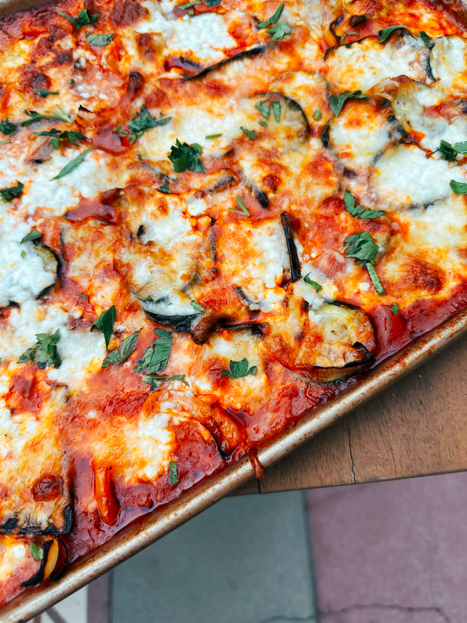 - Then top with mozzarella and fresh parsley.