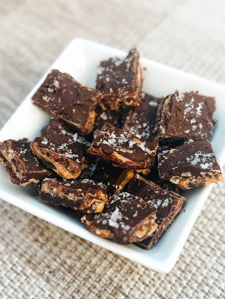 If you have been to my house and opened my freezer, you will have seen my consistent stash of my Snickers Date Bark right next to Nick’s nightly fruit popsicle stash. I know for sure my father in law and brother in law know about my stash because every time they come to visit, the stash mysteriously dwindles.