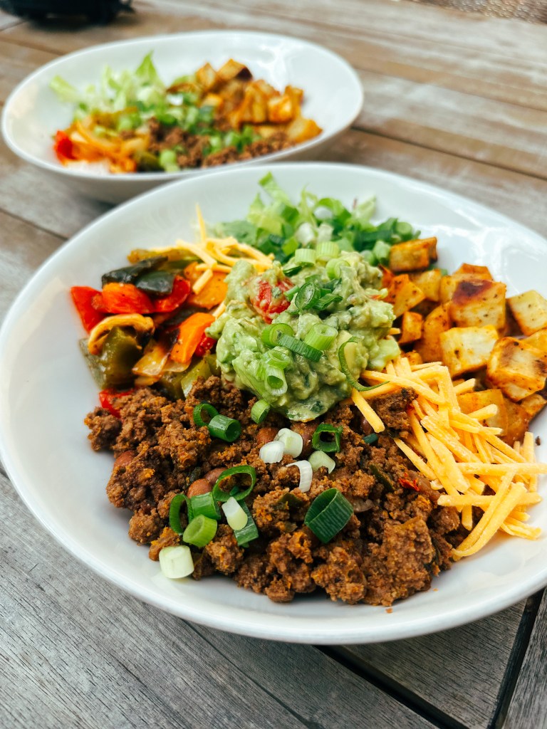 All that to say, this recipe feels less like a traditional recipe and more of a DIY kitchen sink bowl but since I keep going back to the exact same ingredients I figured it was worth sharing. Nick also claims it stands out as its own specific meal because I have been adding baked japanese sweet potato. Hence the “Irish” part of the title. He thinks it’s like Irish Nachos. I don’t really see the resemblance but I guess since I am using potatoes and not rice as the carb in the dish, he has a point. This has also naturally started becoming a staple as Koa loves to eat with his hands. And anyone with a kid knows that cleaning up after a 13-month-old eating is an exercise in patience and mobility. Rice easily became a pain in my a** but baked, cubed sweet potato? Easy peasy to clean up! And he loves it. So win win. Just omit or limit the salt when seasoning.